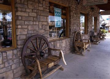 Keywords: bench seats rest wooden brown decorative western style wagon tires