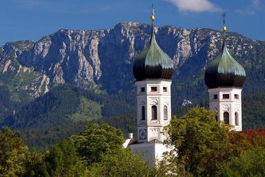 Keywords: benediktbeuern monastery towers religious building germany mountains alps