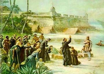 | Keywords: Benedito Calixto - Estácio de Sá em São Vicente, 1565 (detalhe 1).jpg Artwork Creator Benedito Calixto Estácio de Sá em São Vicente 1565 detalhe Estácio de Sá in São Vicente 1565 detail Oil on canvas Palácio São Joaquim Rio de Janeiro Neste pormenor Manuel da Nóbrega abençoa a partida de José de Anchieta de Bertioga com a esquadra de Estácio de Sá http //www novomilenio inf br/santos/calixto/calixt24 jpg PD-old-auto 1927 Other versions <gallery> File Nobrega1 jpg Full version colored File Benedito Calixto - Estácio de Sá em São Vicente 1565 jpg Full version B W File Benedito Calixto - Estácio de Sá em São Vicente 1565 detalhe 2 jpg Detail </gallery> Estácio de Sá Jesuit Missions History of Brazil 1500-1808 Colony Paintings by Benedito Calixto |