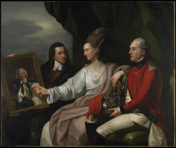 | Keywords: Benjamin West - Portrait Group of the Drummond Family, Peter Auriol Drummond (1754-1799), Mary Bridget Milnes Drummond (1755-1835), and George William Drummond (1761-1807) - 31.60 - Minneapolis Institute of Arts.jpg Portrait Peter Auriol Drummond colonel in the Yorkshire militia is holding the hand of his bride Mary Bridget Milnes wearing the flowing robes and high powdered headdress popular in the 18th century George William Drummond the sixth son of Robert Hay Drummond is seated at the left and they are all looking at a portrait of their father Robert Hay Drummond Archbishop of York painted by Sir Joshua Reynolds in 1764 60 x 72 in 152 4 x 182 88 cm canvas 31 60 https //api artsmia org/images/10538/4404/large jpg Q1700481 Oil on canvas Portrait Group of the Drummond Family Peter Auriol Drummond 1754-1799 Mary Bridget Milnes Drummond 1755-1835 and George William Drummond 1761-1807 https //collections artsmia org/index php page detail id 10538 Q20891487 |