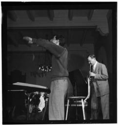 | Keywords: Benny Goodman, Leonard Bernstein, and Max Hollander, Carnegie Hall, New York, N.Y., between 1946 and 1948 (William P. Gottlieb 15151).jpg en Benny Goodman Leonard Bernstein and Max Hollander Carnegie Hall _New York N Y between 1946 and 1948 http //lcweb2 loc gov/diglib/ihas/loc natlib gottlieb 12151/enlarge html page 1 section ver01 size 1024 from Creator William P Gottlieb PD-Gottlieb Photographs by William P Gottlieb Black and white photographs of the United States in the 1940s Leonard Bernstein Benny Goodman |