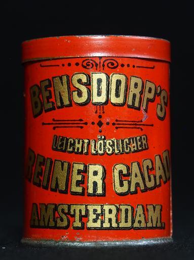 | Keywords: Bensdorps leight loslicher Reiner Cacao Amsterdam, oranje rond blikje, foto4.JPG Very old product that is not produced and not sold any more Note that some tins may look the same but when looked for carefully there are some slight differences Photographed at a collector of Droste memorabilia and old tin cans For more info see http //www tincollectors nl/ tincollectors nl or email info tincollectors nl own 2014-02-08 13 03 34 Alf van Beem CC-Zero Trademarked Bensdorp cocoa tins Bensdorp cacao |