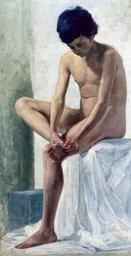 | Keywords: Bento Barbosa - Menino tirando espinho do pé, 1897.jpg Artwork Creator Bento Barbosa Boy removing a thorn from his feet Menino tirando espinho do pé 1897 Oil on canvas cm 105 60 Museu Dom João VI Rio de Janeiro http //www dezenovevinte net/bios/bio_bb_arquivos/bb_1897 jpg PD-Art Other versions Bento Barbosa 1897 paintings Paintings of nude boys Paintings in the Museu Dom João VI Academic paintings in Brazil Pulling a thorn in art 1890s paintings from Brazil | ||||