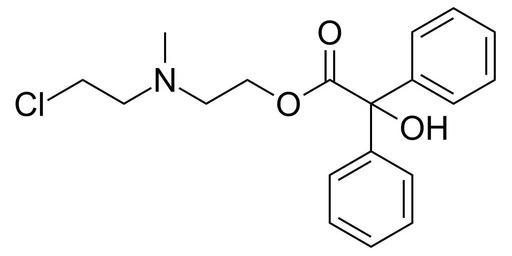 Keywords: Benzilylcholine mustard.svg Chemical structure of benzilylcholine mustard Own 19 15 11 May 2011 UTC Ed Edgar181 Carboxylate esters Alkylating agents Tertiary amines Organochlorides