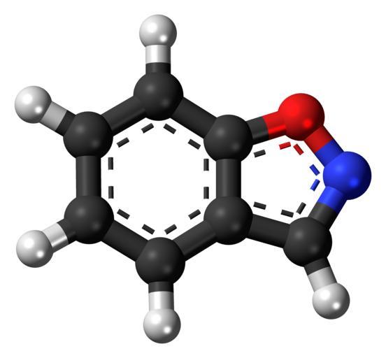 | Keywords: Benzisoxazole 3D ball inverted.png Ball-and-stick model of the benzisoxazole molecule a nitrogen-oxygen heterocycle and a simple aromatic ring Colour code 505050 Carbon C black<br> F0F0F0 Hydrogen H white<br> F51E1E Oxygen O red<br> 3C50FA Nitrogen N blue<br> 2011-02-10 own DS Visualizer Jynto talk Space-filling version cc-zero Benzisoxazole Images by Jynto Ball-and-stick models | ||||