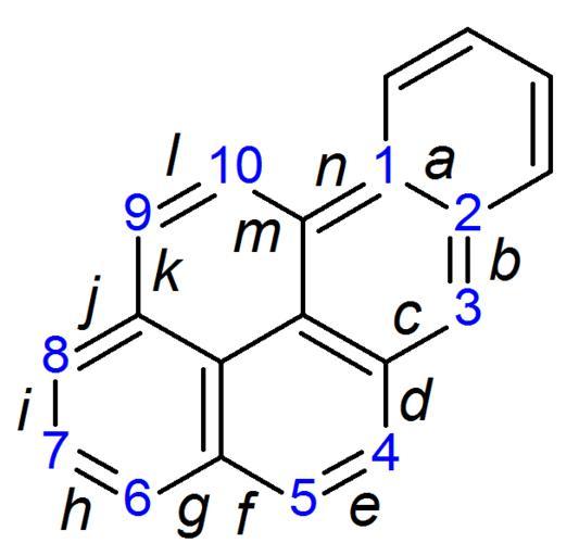 Keywords: Benzo(a)pyrene numbered.png en Chemical structure of w Benzo a pyrene showing numbering and bond locations according to IUPAC nomenclature Own Shoy 2009-04-22 Benzo a pyrene