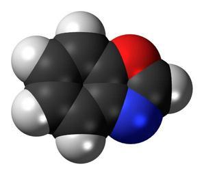 | Keywords: Benzoxazole 3D spacefill inverted.png Space-filling model of the benzoxazole molecule a nitrogen-oxygen heterocycle and a simple aromatic ring Colour code 505050 Carbon C black<br> F0F0F0 Hydrogen H white<br> F51E1E Oxygen O red<br> 3C50FA Nitrogen N blue<br> 2011-08-30 own DS Visualizer Jynto talk Ball-and-stick version cc-zero Benzoxazole Images by Jynto Space-filling models | ||||