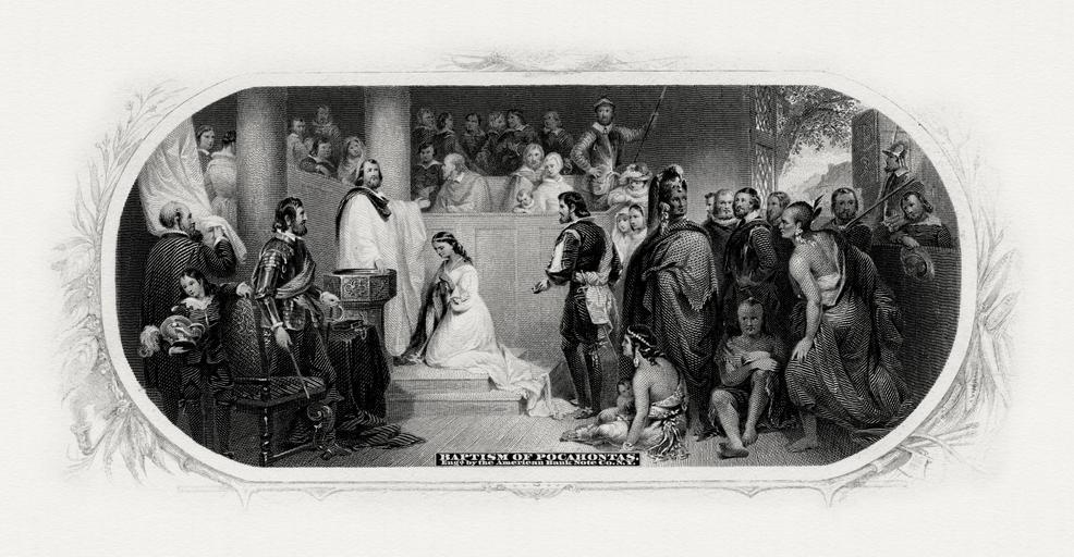 MAKE A MEME View Large Image ...Baptism of Pocahontas (Chapman).jpg Assessments 1 Historical paintings engraved for U S banknotes LargeImage Bureau of Engraving and Printing engraved vignette of John G Chapman ™s painting Baptism of Pocahontas Engraving by Charles Burt ...