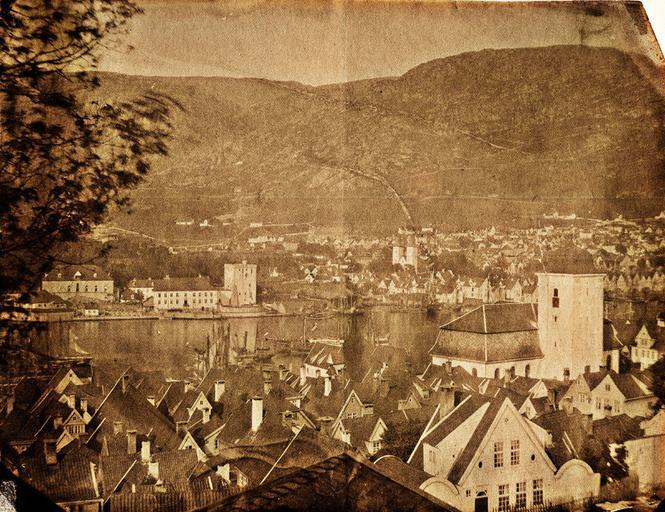 | Keywords: bergen mariakirken "Parti af Bergen. Sett fra Frederiksberg." Foto Mathias Hansen. Illustreret Nyhedsblad Nr. 1 1857 s. 5. Arkivreferanse: PA17U1_3. Original billedtekst: Billeder fra Kronprindsens Reise. Parti af Bergen (Efter Photographi af M. Hansen) "Det Billede, man her seer, fremstiller et Parti af Bergen, taget fra Frederiksberg. I Forgrunden har man endeel Huse af Strandsiden og tilhøire Nykirken. I Midten gaar Vaagen med den bekjendte Tydskebrygge og hiinsides den er Bryggesiden, Byens ældste Deel, og Fløifjeldet i Baggrunden. Til venstre på hiin Side af Vaagen seer man Dele af Slottet, først Magazinsbygningen (den fordums prægtige Kongehal), saa længere tilhøire Kommandantboligen og det urigtigen saakaldte Walkendorfs Taarn, hvis ældste Deel er fra Haakon Haakonsøns Tid, medens den yngre er opført mellem Aarene 1563 og 1568 af Erik Rosenkrantz, efter hvem det hele Taarn også lige ind i det forrige Aarhundrede bar Navn. Endnu længere tilhøire omtrent i Billedets Midte hæve sig Tydskekirkens tvende Taarne." Url: www.arkivverket.no/arkivverket/Bruk-av-arkiv/Nettutstilli... "Parti af Bergen. Sett fra Frederiksberg." Foto Mathias Hansen. Illustreret Nyhedsblad Nr. 1 1857 s. 5. Arkivreferanse: PA17U1_3. Original billedtekst: Billeder fra Kronprindsens Reise. Parti af Bergen (Efter Photographi af M. Hansen) "Det Billede, man her seer, fremstiller et Parti af Bergen, taget fra Frederiksberg. I Forgrunden har man endeel Huse af Strandsiden og tilhøire Nykirken. I Midten gaar Vaagen med den bekjendte Tydskebrygge og hiinsides den er Bryggesiden, Byens ældste Deel, og Fløifjeldet i Baggrunden. Til venstre på hiin Side af Vaagen seer man Dele af Slottet, først Magazinsbygningen (den fordums prægtige Kongehal), saa længere tilhøire Kommandantboligen og det urigtigen saakaldte Walkendorfs Taarn, hvis ældste Deel er fra Haakon Haakonsøns Tid, medens den yngre er opført mellem Aarene 1563 og 1568 af Erik Rosenkrantz, efter hvem det hele Taarn også lige ind i det forrige Aarhundrede bar Navn. Endnu længere tilhøire omtrent i Billedets Midte hæve sig Tydskekirkens tvende Taarne." Url: www.arkivverket.no/arkivverket/Bruk-av-arkiv/Nettutstilli... |