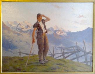 Keywords: Berger Salle Furet Castle of Gruyères.jpg Berger consultant l'horizon 1879 by Auguste Baud-Bovy oil on canva 90 5 x 121cm Own 1886 Auguste Baud-Bovy 1848-1899 - Photography SalomonCeb PD-Art Musée du Château de Gruyères Auguste Baud-Bovy