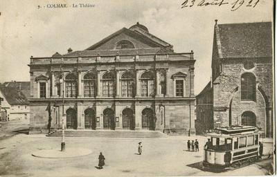 | Keywords: BERGERET 9 - COLMAR - Le Théatre.JPG fr Carte postale ancienne éditée par Bergeret n°9 <br >Colmar - Le Théâtre Collection personnelle Scanné par Claude_villetaneuse Carte datée du 13 août 1921 pd-old 48 4 44 94 N 7 21 17 09 E region FR_heading N Historical images of Colmar Trams in Colmar Haut-Rhin in the 1920s Théâtre municipal de Colmar |
