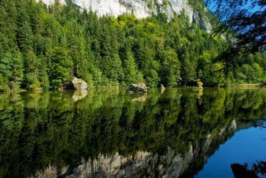 Keywords: bergisteiner see lake forest trees shore shoreline water mountains nature outside landscape reflections country rural