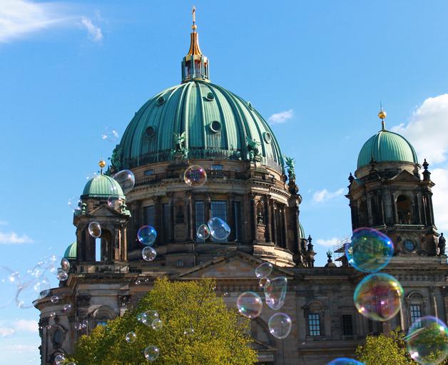 Keywords: berlin cathedral cathedral dome sky blue berlin capital places of interest historically building architecture germany old church dome city soap bubbles