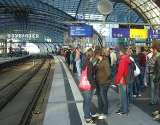 Keywords: berlin central station glass dome platform hall glass glass construction gleise railroad tracks travel group travellers tourists seemed railway railway tracks