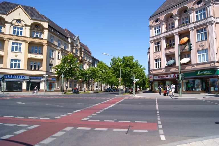 Keywords: berlin germany city cities buildings urban architecture street trees spring summer crosswalk