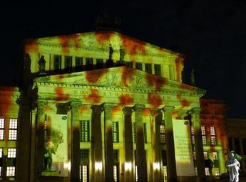 Keywords: berlin image night darkness wall tourism projection festival of lights concert hall theater facade historically lighting festival gendarmenmarkt dark capital pillar