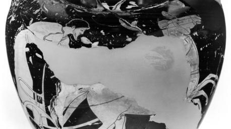 | Keywords: Berlin Painter - Amphora with Chariot and Driver - Walters 482235 - Side B Detail A.jpg This red-figure doubleen depicts a charioteer driving biga to the right Bearded he wears a belted xystis and leans forward to urge on the two horses; the lower part of a goad he holds is preserved The horses gallop right heads held up high front legs well off the ground On the back a bearded mantled man wears a fillet He stands to the left right arm extended ca 490 480 BC early Classical terracotta cm 30 3 18 1 h x max diam ; at rim cm 13 5 diam ; at foot cm 8 1 diam accession number 48 2235 20732 E Hollis Hopkins date and mode of acquisition unknown Walters Art Museum 1961 by purchase Museum purchase with funds provided by the S and A P Fund 1961 place of origin Attica Greece Walters Art Museum license Ancient Greek red-figure pottery in the Walters Art Museum Berlin Painter Media contributed by the Walters Art Museum needs category review Media contributed by the Walters Art Museum needs artist update |