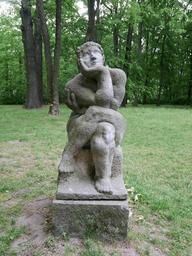 Keywords: berlin sculpture biesdorf schlosspark biesdorf park ingeborg hunzinger art of ddr sand stone musing thoughtfulness stone figure