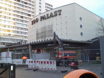 | Keywords: Berlin Zpoopalast.JPG en Cinema complexes killed Ku'Damm cinemas like Gloria Filmbühne Wien Hollywood Marmorhaus and others Recently German cinema complex inventor Flebbe bought the Zoopalast cinema to turn it into a cinema lounge and to give it back it's soul Begin of upgrading works at former Zoopalast cinema in January 2011 own Bukk 2011-01-12 Cc-zero Zoo Palast Building construction in Berlin | ||||