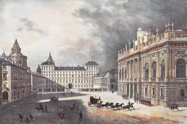 Keywords: Berlina Reale in Piazza Castello.png it passaggio della carrozza Reale del re Carlo Alberto in Piazza Castello a Torino http //baldi diplomacy edu/diplo/texts/Colombo_Sacco_150 pdf Creator Luigi Premazzi 1842 PD-old-100 Charles Albert of Sardinia Royal carriages in Italy Luigi Premazzi Piazza Castello Turin |
