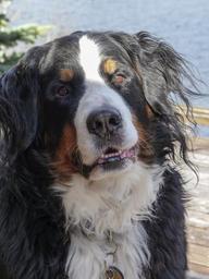 Keywords: bernese mountain dog waiting nature canine pet human friendly animal at attention mammal three colored outside