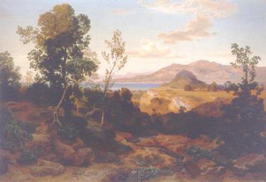 | Keywords: Bernhard Fries - Südliche Gebirgslandschaft am See.jpg ca 1840 oil on canvas cm 95 137 object history ProvenanceEvent sale 2000-01-31 Christie's Düsseldorf 50 credit line http //www artnet de/Artists/LotDetailPage aspx lot_id 24F3AC282D7A20CD http //www webcitation org/5sc12LeQz archived PD-Art Bernhard Fries |