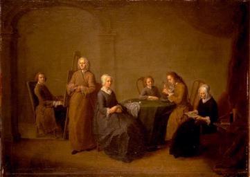 | Keywords: Bernhard Rode Selbstporträt mit Familie.jpg Artwork Creator Bernhard Rode de Der Künstler im Kreis seiner Familie ca 1745 oil canvas cm 66 91 5 Institution Gemäldegalerie Berlin Accession number Credit line Object history Source Other versions PD-old-100 1740s paintings by Bernhard Rode German 18th-century paintings in the Gemäldegalerie Berlin Rode 18th-century self-portrait paintings of men 1745 1740s paintings in Germany 18th-century family portraits 1745 18th-century oil portraits 1745 18th-century portraits at full length 1745 Self-portraits with family Group portraits with 6 persons 1740s portrait paintings Paintings of families |