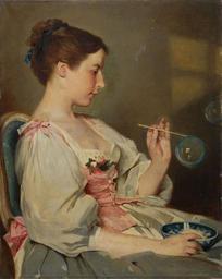 | Keywords: Bernhard Zickendraht - Junge Frau mit Seifenblasen (1881).jpg 1881 Oil on canvas cm 81 64 accession number object history credit line exhibition history signature and date http //katalog auktionshaus-wendl com/de/i/2427845/p/42/ PHPSESSID l8thf3n8jv858l3clf266pqf33 Auktionshaus Wendl März 2007 Auktion 57 Kat Nr 4684 <gallery>Chaplin-Blowing Bubbles jpg a similar painting by Charles Joshua Chaplin Charles Chaplin </gallery> PD-old-auto-1923 1937 Bernhard Zickendraht 19th-century paintings location missing 1881 genre paintings 19th-century oil paintings of sitting women at half length 19th-century portraits of girls at half length Soap bubbles in art Women facing right and looking right |