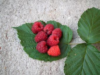 Keywords: berry raspberry fruit red sweet fresh a lot leaves closeup in the summer time summer garden green sheet summer day green leaves in the summer of food dessert