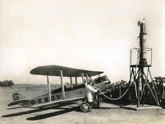 | Keywords: parafield aerodrome adelaide south australia southaustralia 1928 bert hinkler berthinkler avro avian cirrus aviancirrus aeroplane vintage fuel petrol shell pioneer aviator cru årgang jahrgang vendimia outdoor Born in Bundaberg, Queensland, Herbert John Louis Hinkler AFC DSM (8 December 1892 – 7 January 1933), better known as Bert Hinkler, was a pioneer Australian aviator (dubbed "Australian Lone Eagle") and inventor. He designed and built early aircraft before being the first person to fly solo from England to Australia, and the first person to fly solo across the Southern Atlantic Ocean. This is his plane "Avian Cirrus" being re-fuelled at the Parafield Aerodrome in Adelaide, South Australia in 1928. Born in Bundaberg, Queensland, Herbert John Louis Hinkler AFC DSM (8 December 1892 – 7 January 1933), better known as Bert Hinkler, was a pioneer Australian aviator (dubbed "Australian Lone Eagle") and inventor. He designed and built early aircraft before being the first person to fly solo from England to Australia, and the first person to fly solo across the Southern Atlantic Ocean. This is his plane "Avian Cirrus" being re-fuelled at the Parafield Aerodrome in Adelaide, South Australia in 1928. |