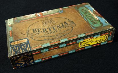 Keywords: Bertenja sigaren doos, foto3.JPG Very old packaging of a Dutch product that is not produced and/or not sold any more own 2014-03-16 16 25 36 Alf van Beem CC-Zero Trademarked Bertenja cigars