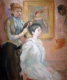 | Keywords: Berthe Morisot - La Coiffure, 1894.jpg Artwork creator Berthe Morisot 1894 Oil on canvas cm 55 46 Institution Museo Nacional de Bellas Artes in Buenos Aires Buenos Aires accession number object history credit line http //www mnba org ar/obras_autor php autor 227 opcion 1 former ; https //fbcdn-sphotos-g-a akamaihd net/hphotos-ak-ash4/312474_463948156987216_1744456692_n jpg current PD-old-100 Paintings by Berthe Morisot French paintings in the Museo Nacional de Bellas Artes Argentina Sitting people Sitting with hand on head 1890s paintings from France 1894 paintings |
