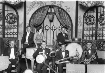 | Keywords: band 1929 1920s twenties seven indoors hotel banjo sax saxophone drums piano trumpet clarinet dancer dance musicians people groupshot blackandwhite monochrome black and white A touring English band with dancer Beryl Evetts. Here's a rave review from a Hobart audience member: nla.gov.au/nla.news-article24258155 Format: Photograph Find more detailed information about this photograph: acms.sl.nsw.gov.au/item/itemDetailPaged.aspx?itemID=8670 Search for more great images in the State Library's collections: acms.sl.nsw.gov.au/search/SimpleSearch.aspx From the collection of the State Library of New South Wales www.sl.nsw.gov.au A touring English band with dancer Beryl Evetts. Here's a rave review from a Hobart audience member: nla.gov.au/nla.news-article24258155 Format: Photograph Find more detailed information about this photograph: acms.sl.nsw.gov.au/item/itemDetailPaged.aspx?itemID=8670 Search for more great images in the State Library's collections: acms.sl.nsw.gov.au/search/SimpleSearch.aspx From the collection of the State Library of New South Wales www.sl.nsw.gov.au |