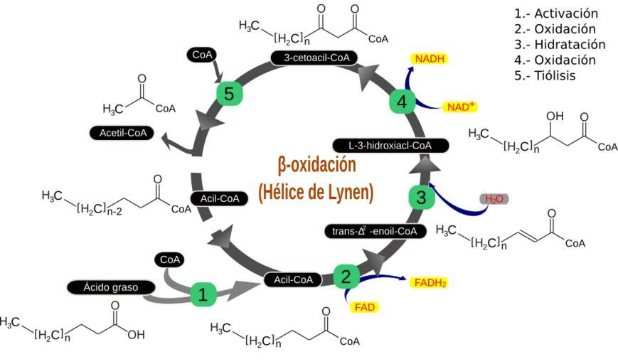Keywords: Beta-oxidacion.svg es Esquema de la beta oxidación de los ácidos grasos Traducción al español de Alejandro Porto 2013-03-08 19 37 05 File Beta oksydacja svg Pisum traducido al español por Alejandro Porto cc-zero Uncategorized 2013 March 8