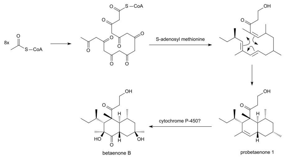 Keywords: Betaenone B synthesis.svg betaenone B as proposed by Oikawa et al own vectorised from File Betaenone B synth gif Anypodetos 2012-06-24 BKchem 001 -check Betaenones Biosyntheses Cc-zero
