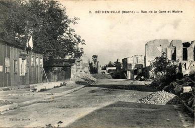 | Keywords: Betheniville.jpg fr Carte postale ancienne éditée par Ancis n°2 <br />Bétheniville - Rue de la Gare et Mairie ca 1920 own collection - Postcard travail personnel Anonymous-EU PD-1923 Uploaded with UploadWizard Bétheniville Postcards of Marne |