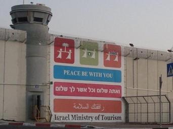 | Keywords: Bethlehem wall with Israeli propaganda.jpg en Israeli signage on separation wall in Occupied Palestinian Territories 2011-10-04 own Wickey-nl thumb File Israel Ministry of Tourism banner jpg cc-zero Uploaded with UploadWizard Bethlehem barrier Israelites_carrying_grapes_of_Canaan |