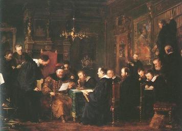 | Keywords: Bethlen-tudos.jpg Artwork Creator Géza Dósa Gábor Bethlen among his Scholars 1870 Oil on canvas cm 100 72 Institution Hungarian National Gallery Budapest accession number object history credit line sketch vázlat http //www hung-art hu/magyar/d/dosa/muvek/index html hung-art PD-old-100 1870 paintings Paintings in the Hungarian National Gallery Gábor Bethlen Géza Dósa |