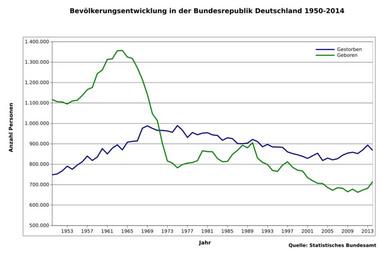 | Keywords: Bevölkerungentwicklung Deutschland 1950-2014.svg en Births and deaths in Germany between 1950 and 2014 de Geburten und Sterbefälle von 1950 bis 2014 in der Bundesrepublik Deutschland Statistisches Bundesamt DaB 2016-04-03 Birth and death rates Cc-zero |