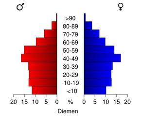 | Keywords: Bevolkingspiramide 2008 - CBS gemeentecode 0384.svg Age pyramids for the municipalities in the Netherlands 1/1/2008 Created in svg with own script Statistics provided by Centraal Bureau voor de Statistiek Voorburg/Heerlen Source Tabel Bevolking; burgerlijke staat geslacht leeftijd en regio 1 januari Tabeltoelichting Gewijzigd op 14 mei 2008 Verschijningsfrequentie per jaar http //statline cbs nl/StatWeb/publication/default aspx DM SLNL PA 03759NED D1 1-2 2c15 D2 118-128 D3 1-4 2c8-9 2c13-19 2c21 2c24 2c26 2c28-30 2c33-36 2c38-40 2c43-44 2c48-49 2c52 2c54 2c56 2c59 2c62 2c64 2c67-71 2c78 2c80-84 2c86-89 2c91 2c93-98 2c101 2c103-107 2c109 2c111-112 2c115 2c118-119 2c121-124 2c126-127 2c130 2c132-134 2c136 2c138-141 2c143-144 2c146 2c151 2c154 2c156-157 2c159-160 2c162-163 2c166-167 2c169 2c171 2c177-179 2c181-182 2c184 2c187-189 2c191-195 2c198 2c201 2c204-205 2c207 2c209 2c211 2c214 2c218-219 2c221-224 2c226 2c228-230 2c233 2c236 2c241-243 2c246-251 2c253 2c257-262 2c265 2c271-274 2c276 2c278 2c282 2c284 2c286-290 2c292 2c294 2c296 2c298-299 2c301-303 2c306 2c312-314 2c317-318 2c321-322 2c327 2c329 2c332 2c334-335 2c337 2c339 2c344-346 2c349-353 2c355-358 2c361 2c363-366 2c368 2c370-373 2c380 2c382-383 2c386-391 2c393-395 2c399 2c403-406 2c408-409 2c412 2c416-417 2c419 2c421-422 2c424 2c426-430 2c432-433 2c439-441 2c447-448 2c450-452 2c455-456 2c458-459 2c462-463 2c465 2c468-469 2c471 2c476 2c478-479 2c481-482 2c484-486 2c489 2c491-492 2c496 2c498-500 2c503 2c505-507 2c512-516 2c519-521 2c523-524 2c528-532 2c534 2c536 2c540 2c542-543 2c546-550 2c552-555 2c560-561 2c564-565 2c567-568 2c572-573 2c577-580 2c586 2c588-594 2c597 2c599-603 2c605 2c609-610 2c612-614 2c617 2c619 2c621-624 2c628 2c630-631 2c633 2c636-637 2c640 2c646-647 2c649-651 2c653 2c655-661 2c663-664 2c666 2c668-670 2c673 2c675-681 2c683-684 2c686 2c689-690 2c693 2c695-696 2c698 2c701-702 2c706-710 2c717 2c719 2c721-722 2c724-725 2c727 2c732-733 2c735-742 2c746 2c750-752 2c756-757 2c759 2c761 2c763-764 2c766-769 2c771-772 2c774-775 2c777 2c779 2c783 2c785-788 2c791-793 2c796-797 D4 l HDR T STB G1 2cG2 2cG3 VW D StatLine own work using CBS data 2009-01 Michiel1972 Own work all rights released Public domain Population pyramids of municipalities of the Netherlands 2008 |