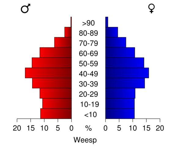 | Keywords: Bevolkingspiramide 2008 - CBS gemeentecode 0457.svg Age pyramids for the municipalities in the Netherlands 1/1/2008 Created in svg with own script Statistics provided by Centraal Bureau voor de Statistiek Voorburg/Heerlen Source Tabel Bevolking; burgerlijke staat geslacht leeftijd en regio 1 januari Tabeltoelichting Gewijzigd op 14 mei 2008 Verschijningsfrequentie per jaar http //statline cbs nl/StatWeb/publication/default aspx DM SLNL PA 03759NED D1 1-2 2c15 D2 118-128 D3 1-4 2c8-9 2c13-19 2c21 2c24 2c26 2c28-30 2c33-36 2c38-40 2c43-44 2c48-49 2c52 2c54 2c56 2c59 2c62 2c64 2c67-71 2c78 2c80-84 2c86-89 2c91 2c93-98 2c101 2c103-107 2c109 2c111-112 2c115 2c118-119 2c121-124 2c126-127 2c130 2c132-134 2c136 2c138-141 2c143-144 2c146 2c151 2c154 2c156-157 2c159-160 2c162-163 2c166-167 2c169 2c171 2c177-179 2c181-182 2c184 2c187-189 2c191-195 2c198 2c201 2c204-205 2c207 2c209 2c211 2c214 2c218-219 2c221-224 2c226 2c228-230 2c233 2c236 2c241-243 2c246-251 2c253 2c257-262 2c265 2c271-274 2c276 2c278 2c282 2c284 2c286-290 2c292 2c294 2c296 2c298-299 2c301-303 2c306 2c312-314 2c317-318 2c321-322 2c327 2c329 2c332 2c334-335 2c337 2c339 2c344-346 2c349-353 2c355-358 2c361 2c363-366 2c368 2c370-373 2c380 2c382-383 2c386-391 2c393-395 2c399 2c403-406 2c408-409 2c412 2c416-417 2c419 2c421-422 2c424 2c426-430 2c432-433 2c439-441 2c447-448 2c450-452 2c455-456 2c458-459 2c462-463 2c465 2c468-469 2c471 2c476 2c478-479 2c481-482 2c484-486 2c489 2c491-492 2c496 2c498-500 2c503 2c505-507 2c512-516 2c519-521 2c523-524 2c528-532 2c534 2c536 2c540 2c542-543 2c546-550 2c552-555 2c560-561 2c564-565 2c567-568 2c572-573 2c577-580 2c586 2c588-594 2c597 2c599-603 2c605 2c609-610 2c612-614 2c617 2c619 2c621-624 2c628 2c630-631 2c633 2c636-637 2c640 2c646-647 2c649-651 2c653 2c655-661 2c663-664 2c666 2c668-670 2c673 2c675-681 2c683-684 2c686 2c689-690 2c693 2c695-696 2c698 2c701-702 2c706-710 2c717 2c719 2c721-722 2c724-725 2c727 2c732-733 2c735-742 2c746 2c750-752 2c756-757 2c759 2c761 2c763-764 2c766-769 2c771-772 2c774-775 2c777 2c779 2c783 2c785-788 2c791-793 2c796-797 D4 l HDR T STB G1 2cG2 2cG3 VW D StatLine own work using CBS data 2009-01 Michiel1972 Own work all rights released Public domain Population pyramids of municipalities of the Netherlands 2008 |