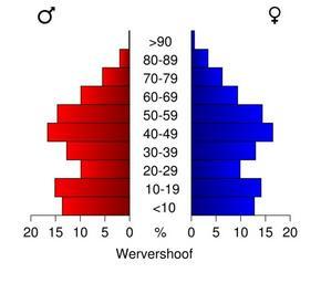 | Keywords: Bevolkingspiramide 2008 - CBS gemeentecode 0459.svg Age pyramids for the municipalities in the Netherlands 1/1/2008 Created in svg with own script Statistics provided by Centraal Bureau voor de Statistiek Voorburg/Heerlen Source Tabel Bevolking; burgerlijke staat geslacht leeftijd en regio 1 januari Tabeltoelichting Gewijzigd op 14 mei 2008 Verschijningsfrequentie per jaar http //statline cbs nl/StatWeb/publication/default aspx DM SLNL PA 03759NED D1 1-2 2c15 D2 118-128 D3 1-4 2c8-9 2c13-19 2c21 2c24 2c26 2c28-30 2c33-36 2c38-40 2c43-44 2c48-49 2c52 2c54 2c56 2c59 2c62 2c64 2c67-71 2c78 2c80-84 2c86-89 2c91 2c93-98 2c101 2c103-107 2c109 2c111-112 2c115 2c118-119 2c121-124 2c126-127 2c130 2c132-134 2c136 2c138-141 2c143-144 2c146 2c151 2c154 2c156-157 2c159-160 2c162-163 2c166-167 2c169 2c171 2c177-179 2c181-182 2c184 2c187-189 2c191-195 2c198 2c201 2c204-205 2c207 2c209 2c211 2c214 2c218-219 2c221-224 2c226 2c228-230 2c233 2c236 2c241-243 2c246-251 2c253 2c257-262 2c265 2c271-274 2c276 2c278 2c282 2c284 2c286-290 2c292 2c294 2c296 2c298-299 2c301-303 2c306 2c312-314 2c317-318 2c321-322 2c327 2c329 2c332 2c334-335 2c337 2c339 2c344-346 2c349-353 2c355-358 2c361 2c363-366 2c368 2c370-373 2c380 2c382-383 2c386-391 2c393-395 2c399 2c403-406 2c408-409 2c412 2c416-417 2c419 2c421-422 2c424 2c426-430 2c432-433 2c439-441 2c447-448 2c450-452 2c455-456 2c458-459 2c462-463 2c465 2c468-469 2c471 2c476 2c478-479 2c481-482 2c484-486 2c489 2c491-492 2c496 2c498-500 2c503 2c505-507 2c512-516 2c519-521 2c523-524 2c528-532 2c534 2c536 2c540 2c542-543 2c546-550 2c552-555 2c560-561 2c564-565 2c567-568 2c572-573 2c577-580 2c586 2c588-594 2c597 2c599-603 2c605 2c609-610 2c612-614 2c617 2c619 2c621-624 2c628 2c630-631 2c633 2c636-637 2c640 2c646-647 2c649-651 2c653 2c655-661 2c663-664 2c666 2c668-670 2c673 2c675-681 2c683-684 2c686 2c689-690 2c693 2c695-696 2c698 2c701-702 2c706-710 2c717 2c719 2c721-722 2c724-725 2c727 2c732-733 2c735-742 2c746 2c750-752 2c756-757 2c759 2c761 2c763-764 2c766-769 2c771-772 2c774-775 2c777 2c779 2c783 2c785-788 2c791-793 2c796-797 D4 l HDR T STB G1 2cG2 2cG3 VW D StatLine own work using CBS data 2009-01 Michiel1972 Own work all rights released Public domain Population pyramids of municipalities of the Netherlands 2008 |