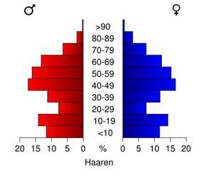 | Keywords: Bevolkingspiramide 2008 - CBS gemeentecode 0788.svg Age pyramids for the municipalities in the Netherlands 1/1/2008 Created in svg with own script Statistics provided by Centraal Bureau voor de Statistiek Voorburg/Heerlen Source Tabel Bevolking; burgerlijke staat geslacht leeftijd en regio 1 januari Tabeltoelichting Gewijzigd op 14 mei 2008 Verschijningsfrequentie per jaar http //statline cbs nl/StatWeb/publication/default aspx DM SLNL PA 03759NED D1 1-2 2c15 D2 118-128 D3 1-4 2c8-9 2c13-19 2c21 2c24 2c26 2c28-30 2c33-36 2c38-40 2c43-44 2c48-49 2c52 2c54 2c56 2c59 2c62 2c64 2c67-71 2c78 2c80-84 2c86-89 2c91 2c93-98 2c101 2c103-107 2c109 2c111-112 2c115 2c118-119 2c121-124 2c126-127 2c130 2c132-134 2c136 2c138-141 2c143-144 2c146 2c151 2c154 2c156-157 2c159-160 2c162-163 2c166-167 2c169 2c171 2c177-179 2c181-182 2c184 2c187-189 2c191-195 2c198 2c201 2c204-205 2c207 2c209 2c211 2c214 2c218-219 2c221-224 2c226 2c228-230 2c233 2c236 2c241-243 2c246-251 2c253 2c257-262 2c265 2c271-274 2c276 2c278 2c282 2c284 2c286-290 2c292 2c294 2c296 2c298-299 2c301-303 2c306 2c312-314 2c317-318 2c321-322 2c327 2c329 2c332 2c334-335 2c337 2c339 2c344-346 2c349-353 2c355-358 2c361 2c363-366 2c368 2c370-373 2c380 2c382-383 2c386-391 2c393-395 2c399 2c403-406 2c408-409 2c412 2c416-417 2c419 2c421-422 2c424 2c426-430 2c432-433 2c439-441 2c447-448 2c450-452 2c455-456 2c458-459 2c462-463 2c465 2c468-469 2c471 2c476 2c478-479 2c481-482 2c484-486 2c489 2c491-492 2c496 2c498-500 2c503 2c505-507 2c512-516 2c519-521 2c523-524 2c528-532 2c534 2c536 2c540 2c542-543 2c546-550 2c552-555 2c560-561 2c564-565 2c567-568 2c572-573 2c577-580 2c586 2c588-594 2c597 2c599-603 2c605 2c609-610 2c612-614 2c617 2c619 2c621-624 2c628 2c630-631 2c633 2c636-637 2c640 2c646-647 2c649-651 2c653 2c655-661 2c663-664 2c666 2c668-670 2c673 2c675-681 2c683-684 2c686 2c689-690 2c693 2c695-696 2c698 2c701-702 2c706-710 2c717 2c719 2c721-722 2c724-725 2c727 2c732-733 2c735-742 2c746 2c750-752 2c756-757 2c759 2c761 2c763-764 2c766-769 2c771-772 2c774-775 2c777 2c779 2c783 2c785-788 2c791-793 2c796-797 D4 l HDR T STB G1 2cG2 2cG3 VW D StatLine own work using CBS data 2009-01 Michiel1972 Own work all rights released Public domain Population pyramids of municipalities of the Netherlands 2008 |