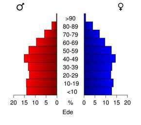 | Keywords: Bevolkingspiramide 2008 - CBS gemeentecode 0228.svg Age pyramids for the municipalities in the Netherlands 1/1/2008 Created in svg with own script Statistics provided by Centraal Bureau voor de Statistiek Voorburg/Heerlen Source Tabel Bevolking; burgerlijke staat geslacht leeftijd en regio 1 januari Tabeltoelichting Gewijzigd op 14 mei 2008 Verschijningsfrequentie per jaar http //statline cbs nl/StatWeb/publication/default aspx DM SLNL PA 03759NED D1 1-2 2c15 D2 118-128 D3 1-4 2c8-9 2c13-19 2c21 2c24 2c26 2c28-30 2c33-36 2c38-40 2c43-44 2c48-49 2c52 2c54 2c56 2c59 2c62 2c64 2c67-71 2c78 2c80-84 2c86-89 2c91 2c93-98 2c101 2c103-107 2c109 2c111-112 2c115 2c118-119 2c121-124 2c126-127 2c130 2c132-134 2c136 2c138-141 2c143-144 2c146 2c151 2c154 2c156-157 2c159-160 2c162-163 2c166-167 2c169 2c171 2c177-179 2c181-182 2c184 2c187-189 2c191-195 2c198 2c201 2c204-205 2c207 2c209 2c211 2c214 2c218-219 2c221-224 2c226 2c228-230 2c233 2c236 2c241-243 2c246-251 2c253 2c257-262 2c265 2c271-274 2c276 2c278 2c282 2c284 2c286-290 2c292 2c294 2c296 2c298-299 2c301-303 2c306 2c312-314 2c317-318 2c321-322 2c327 2c329 2c332 2c334-335 2c337 2c339 2c344-346 2c349-353 2c355-358 2c361 2c363-366 2c368 2c370-373 2c380 2c382-383 2c386-391 2c393-395 2c399 2c403-406 2c408-409 2c412 2c416-417 2c419 2c421-422 2c424 2c426-430 2c432-433 2c439-441 2c447-448 2c450-452 2c455-456 2c458-459 2c462-463 2c465 2c468-469 2c471 2c476 2c478-479 2c481-482 2c484-486 2c489 2c491-492 2c496 2c498-500 2c503 2c505-507 2c512-516 2c519-521 2c523-524 2c528-532 2c534 2c536 2c540 2c542-543 2c546-550 2c552-555 2c560-561 2c564-565 2c567-568 2c572-573 2c577-580 2c586 2c588-594 2c597 2c599-603 2c605 2c609-610 2c612-614 2c617 2c619 2c621-624 2c628 2c630-631 2c633 2c636-637 2c640 2c646-647 2c649-651 2c653 2c655-661 2c663-664 2c666 2c668-670 2c673 2c675-681 2c683-684 2c686 2c689-690 2c693 2c695-696 2c698 2c701-702 2c706-710 2c717 2c719 2c721-722 2c724-725 2c727 2c732-733 2c735-742 2c746 2c750-752 2c756-757 2c759 2c761 2c763-764 2c766-769 2c771-772 2c774-775 2c777 2c779 2c783 2c785-788 2c791-793 2c796-797 D4 l HDR T STB G1 2cG2 2cG3 VW D StatLine own work using CBS data 2009-01 Michiel1972 Own work all rights released Public domain Population pyramids of municipalities of the Netherlands 2008 |