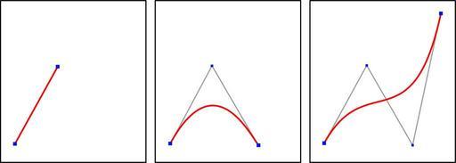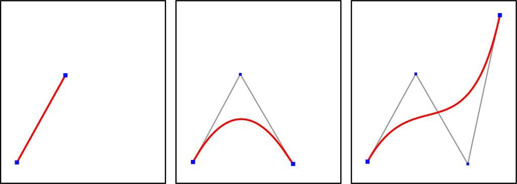 Keywords: Bezier grad123.svg en Bezier curves of the degrees 1 2 and 3 linear quadratic cubic with the associated control-point polygons de Bézierkurven der Grade 1 2 und 3 mit den zugehörigen Kontrollpolygonen own Chris828 date Bezier Curves