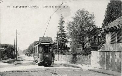 Keywords: BF-tram-station.jpg en Former tram in Blanquefort 2015-04-21 old postcards author other versions cc-zero Historical trams in Bordeaux Postcards of Blanquefort Gironde Uploaded with UploadWizard