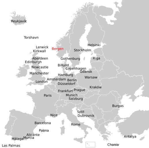 Keywords: BGO international map.svg en Map of international destinations served from Bergen Airport Flesland own Arsenikk 2010-03-10 Bergen Airport Flesland Maps of cities served by flights from given airport