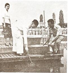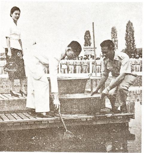 | Keywords: Bhumibol Adulyadej and Sirikit 07.11.1953.jpg th วันที่ 7 พฤศจิกายน พ ศ 2496 พระบาทสม ด็จพระ จ้าอยู่หัวและสม ด็จพระนาง จ้าฯ พระบรมราชินีนาถ สด็จพระราชดำ นินทรงปล่อยปลาหมอ ทศซึ่งโปรด กล้าฯ ให้จับจากบ่อ ลี้ยงส่วนพระองค์ในบริ วณพระตำหนักจิตรลดารโหฐาน ลงในบ่อหน้ากรมประมง ใกล้บริ วณที่ตั้งศาลาหก หลี่ยมในปัจจุบัน โดยมี นายบุญ อินทรัมพรรย์ อธิบดีกรมประมง ้ารับ สด็จฯ ในโอกาส ดียวกันนี้ หลวงสุวรรณวาจกกสิกิจ อธิบดีกรมมหาวิทยาลัย กษตรศาสตร์ ข้า ้าฯ รับพระราชทาน หรียญรัตนาภรณ์ ชั้น 3 หลังจากที่นายบุญ อินทรัมพรรย์ อธิบดีกรมประมง ข้ารับพระราชทาน หรียญรัตนาภรณ์ ชั้น 4 แล้ว นอกจากนั้นยังโปรด กล้าฯ พระราชทานพันธุ์ปลาหมอ ทศแก่ตัวแทนประชาชนทุกหมู่ หล่า นางสาวดารา กัณหะสุวรรณ ป็นตัวแทนนิสิตมหาวิทยาลัย กษตรศาสตร์ ข้ารับพระราชทานด้วย 1953-11-07 http //archives psd ku ac th/kuout/image/p9017a jpg สำนักพระราชวัง other versions Custom license marker 2016 11 05 PD-Thailand Bhumibol Adulyadej in 1953 |