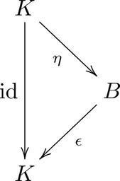 | Keywords: Bialgebra1.svg Created by Dave Rosoff with LaTeX2e and textogif Bialgebra1 png 2010-08-23 06 09 UTC Bialgebra1 png User Alodyne on http //en wikipedia org en wikipedia derivative work Snubcube <span class signature-talk >talk</span> Convert to SVG snubcube Bialgebra1 png LaTeX Source \documentclass article \usepackage xy \xyoption all \begin document \pagestyle empty \ \xymatrix K \ardd_ \mbox id \arrd_\eta \\ B \arld \epsilon \\ K \ \end document other_v</nowiki> Uploaded with derivativeFX Coalgebra structures Commutative triangles Images with LaTeX source code |