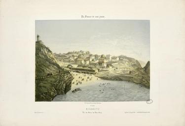 | Keywords: Biarritz - Vue des Bains du Port Vieux - Fonds Ancely - B315556101 A MERCEREAU 7 058.jpg Impression en 3 coul par Frick frères à Paris Fait partie d'un ensemble de recueils de lithographies de Mercereau composés de lithographies provenant de La France de nos jours vaste suite publiée par livraisons de 1853 à 1876 et comprenant 475 planches en deux tirages l'un à deux teintes noir et bistre l'autre en couleurs Les libraires ont réuni ces planches en albums de composition variable quant au nombre de planches et aux dessinateurs Asselineau Mercereau Maurice Deroy etc Un titre Les Pyrénées par Ch Mercereau; Bagnères-de-Luchon par Ch Mercereau était frappé sur le plat supérieur de la reliure de l'album ainsi que le nom du Libraire pour lequel il était réalisé La plupart des recueils de ces planches pyrénéennes portent le nom de Sajous libraire à Bagnères-de-Luchon Pl 1 à 18 numérotées de 370 à 386 Pl 374 pl 5 et 6 en double -- Pl 19 20 et 21 numérotées respectivement 407 415 et 418 Ces trois pl ont été dessinées et lithographiées par Asselineau -- Pl 22 23 et 24 numérotées 438 439 et 440 -- Pl 22 lith par Aubrun -- Pl 25 numérotée 441 -- Pl 26 à 40 numérotées de 327 à 341 -- Pl 41 à 46 numérotées de 363 à 368 -- Pl 47 numérotée 369 -- Pl 48 num 292 -- Pl 49 et 50 num 264 et 265 -- Pl 51 et 52 num 268 et 269 -- Pl 53 à 55 num de 293 à 295 -- Pl 56 num 300 -- Pl 57 à 59 num de 307 à 309 -- Pl 60 à 70 num de 316 à 326 -- Pl 71 num 63 dessin et lith d'Asselineau imprimerie Destouches -- Pl 72 et 73 num 87 et 88 dessin et lith d'Asselineau imprimerie Destouches -- Pl 74 num 124 signée Lebreton éditée chez Lalonde à Paris et imprimée chez Becquet frères à Paris -- Pl 75 num 161 dessin et litho d'Asselineau imprimerie Destouches --Pl 76 à 78 num de 207 à 209 -- Pl 79 à 81 num de 211 à 213 -- Pl 82 num 220 dessin et lith de Maurice imprimerie Destouches -- Pl 83 à 86 num de 226 à 229 -- Pl 87 et 88 num 234 et 235 -- Pl 89 à 91 num de 273 à 275 -- Pl 92 et 93 num 290 et 291 Pièces jointes 6 pl sépia dont certaines sont des doubles du recueil de Mercereau Les cinq premières planches sont numérotées respectivement 318 321 324 331 386 La dernière planche n'est pas extraite de La France de nos jours mais de L'Espagne pittoresque et monumentale Ces six planches sont signées Mercereau éditées chez Sinnet et imprimées chez Frick frères Ancely René 1876 - 1966 Possesseur fre public domain domaine public B315556101_A_MERCEREAU_7_058 jpg image/jpeg 1 f de pl lithogr ; 32 cm oblong Frick frères Imprimeur Sinnet F Éditeur http //numerique bibliotheque toulouse fr/collect/general/index/assoc//ark /74899/B315556101_A_MERCEREAU_7_058 dir/B315556101_A_MERCEREAU_7_058 jpg Bibliothèque municipale de Toulouse A-MERCEREAU 7-58 Creator Charles Mercereau http //catalogues toulouse fr/web2/tramp2 exe/do_keyword_search/log_in setting_key BMT1 servers 1home query p001682 St Jean-de-Luz intérieur de l'Eglise St Jean-de-Luz le Château de l'Infante Biarritz Vue générale prise du Phare Château de Mauvesin près Bagnères-de-Bigorre Hautes Pyrénées Bagnères de Bigorre Hautes Pyrénées - Intérieur de l'Eglise des Carmes en couleurs Bagnères de Bigorre Hautes Pyrénées - Intérieur de l'Eglise des Carmes Bagnères-de-Bigorre - Eglise et couvent des Carmes Bagnères-de-Bigorre Hautes-Pyrénées - Tour des Jacobins Cascade et Pont de Magenta Vallée de l'Esponne Hautes Pyrénées Cascade de Trémes-Aïgues Vallée de Grip Hautes Pyrénées St Sauveur Hautes Pyrénées - Le Pont Napoléon Bayonne - Eglise St André Arreau et la Vallée d'Aure Hautes Pyrénées - Vue prise au dessus de la route du Col d'Aspin Auch - Vue prise sur les bords du Gers Auch - Vue de la Cathédrale Auch - Intérieur de la Cathédrale Bagnères-de-Bigorre - Vue Générale prise de la Fontaine ferrugineuse Eaux-Bonnes Basses-Pyrénées - L'établissement Thermal et la Chapelle Nantes - Vue de l'Eglise Ste Croix Le Croisic - Plage des Baigneurs et Etablissement de Bains Le Folgoët - Vue de l'Eglise Brèche de Roland prise de Gèdres Hautes Pyrénées Eglise des Templiers à Luz Chapelle du couvent de Pouëlahun i e Pouey Lahun - Vallée d'Azun Hautes Pyrénées Le Pont de Scia - Route de Luz à Gavarnie Hautes-Pyrénées Vue de l'établissement de la Raillière près Cauterets Hautes-Pyrénées Vue générale de Cauterets prise du Mamelon Vert Hautes-Pyrénées Vue du Fort de Lourdes Hautes-Pyrénées Vue d'Argelès-de-Bigorre Hautes-Pyrénées Vue de St Sauveur Hautes-Pyrénées Le Pas de l'Echelle Route de Gavarnie Hautes-Pyrénées Fond de la Vallée d'Argelès prise de la terrasse de St Savin Hautes-Pyrénées Place Grammont à Pau Basses-Pyrénées Vue générale des Eaux-Bonnes Basses-Pyrénées Barèges et la Vallée du Bastan Hautes-Pyrénées Chute supérieure du Pont d'Espagne Hautes-Pyrénées La grotte miraculeuse à Lourdes Hautes-Pyrénées Eglise de Bétharram et Pont de Lestelle Basses Pyrénées Cascade du Cerizet Près Cauterets Hautes-Pyrénées Pic du Midi d'Ossau 2885m Basses Pyrénées - Vue prise du 3e plateau de Bious-Artigues Toulouse - Cloître du Musée et Clocher des Augustins Pau - Vue prise de la terrasse du Château Pau - Vue du Château prise du Parc Toulouse - Cloître du Musée Galerie du Moyen-Age Toulouse - La maison de pierre fragment de la façade Toulouse - Intérieur de St Sernin St Jean-de-Luz Fort du Socoa Toulouse - Vue du Capitole Bordeaux Vue de la Porte du Caillau i e Cailhau Bordeaux Porte de la grosse Cloche Bordeaux Vue des Quinconces Bordeaux - Vue de la Tour et de l'Eglise de St Michel Toulouse - Vue du Pont de pierre prise du Quai de Brienne Toulouse - Abside de l'Eglise de St Sernin de l'an 1097 Toulouse - Choeur de la Cathédrale St Etienne Rouen - Hôtel de Bourgtheroulde Biarritz - Vue des Bains Napoléon et du Casino Biarritz - Vue de l'Entrée de la Ville à l'arrivée de Bayonne Le Lac Bleu Hautes-Pyr